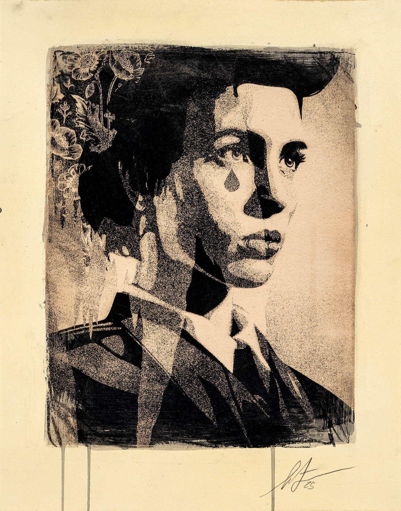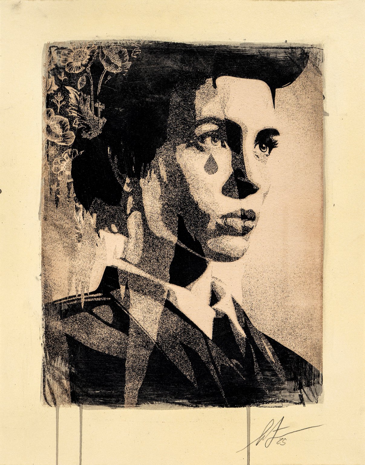 Shepard Fairey God Save Abortion 2025 MediumMono-Engraving and Mixed Media (Ink and Charcoal) on Paper. Edition TypeUnique Share this piece
